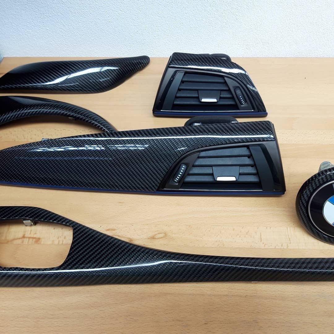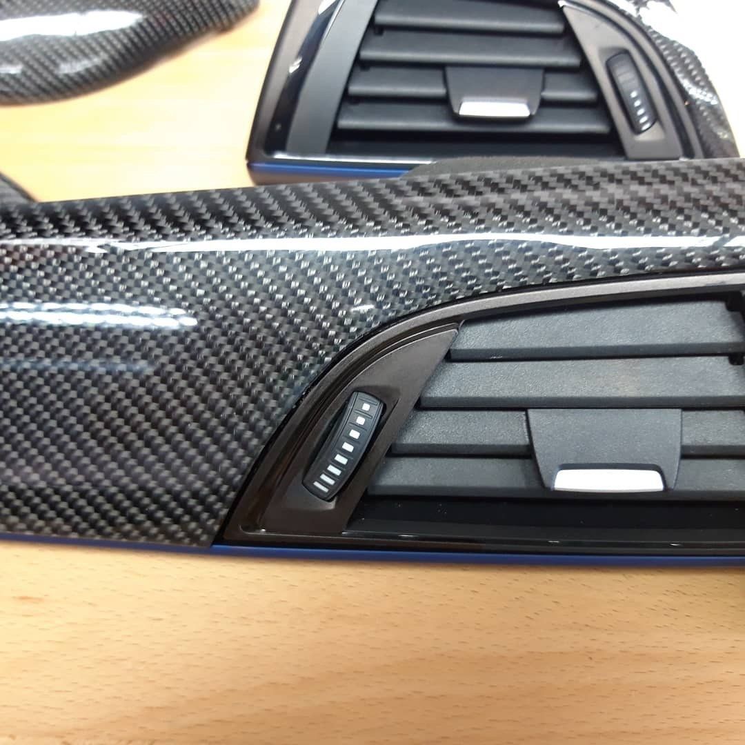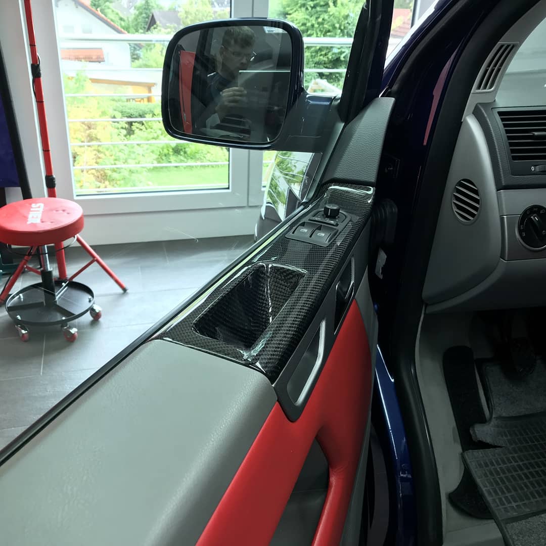 Ergänzend zur professionellen Reinigung und Lackaufbereitung bieten wir die Veredelung mit Sichtcarbon an. Dabei werden originale Bauteile in einem komplexen Laminierungsverfahren mit Echtcarbongewebe und Epoxidharz überzogen. Nachdem der Echtcarbonüberzug ausgehärtet ist werden die Bauteile fein geschliffen und erhalten einen schützenden Klarlacküberzug.
