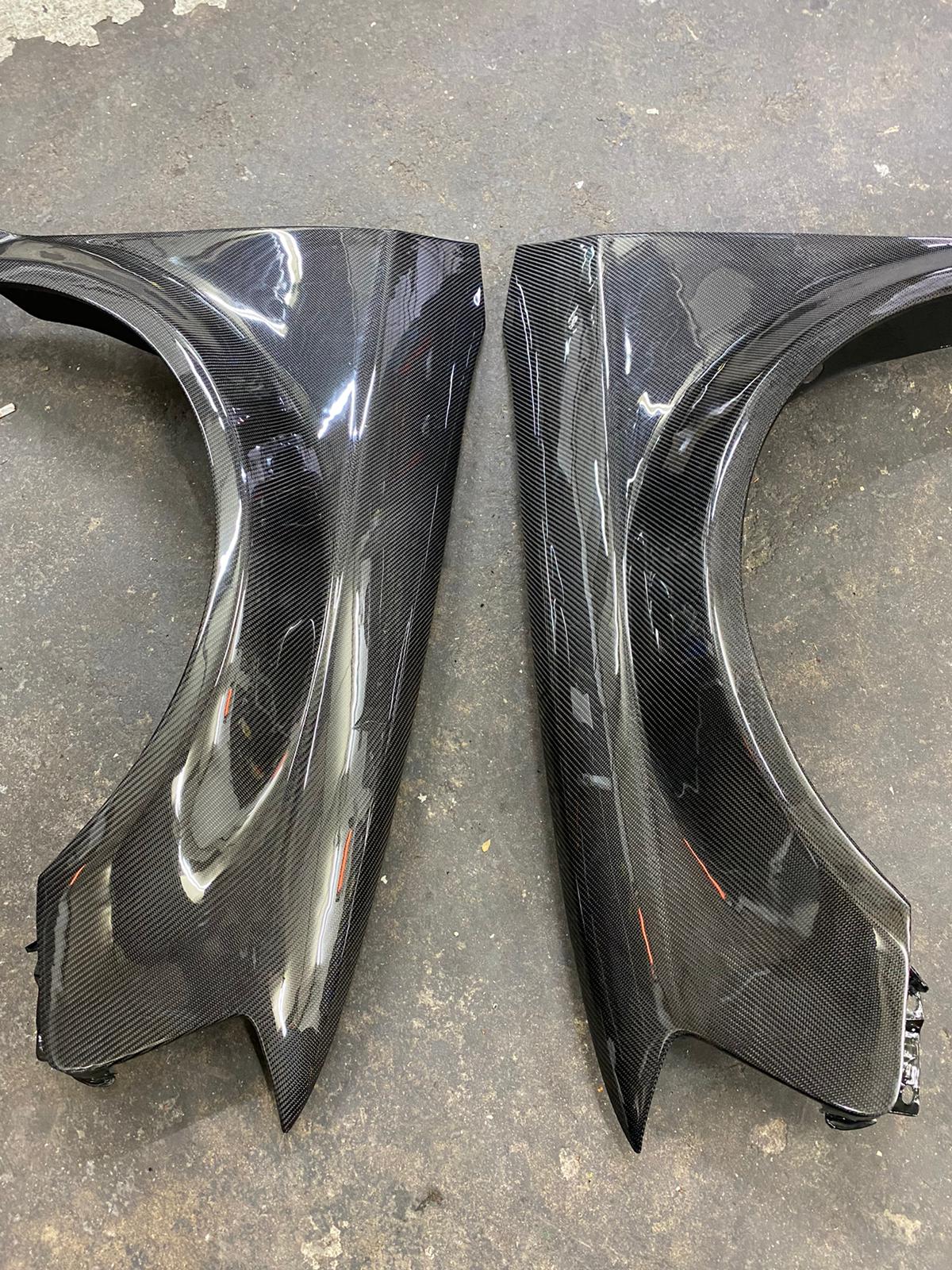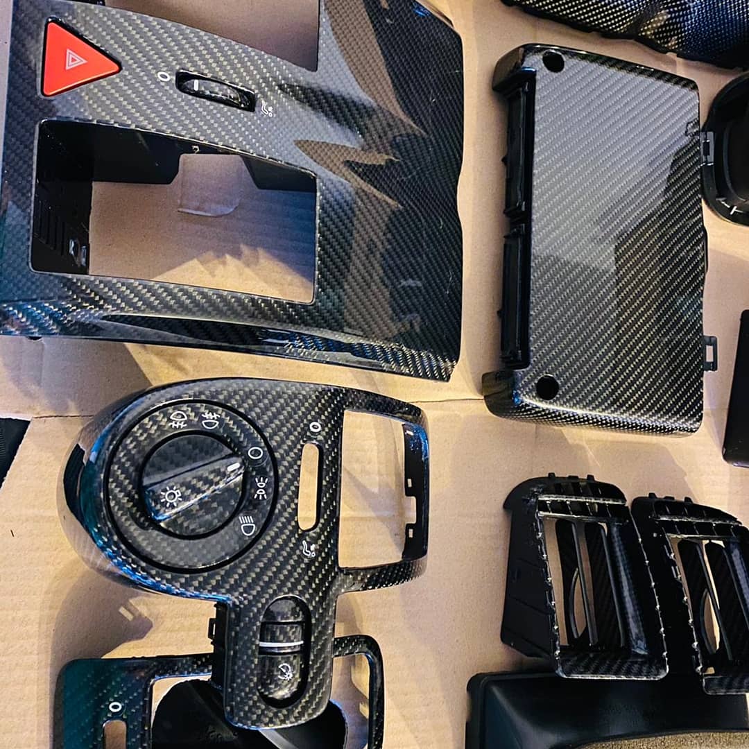 Standardmäßig verwenden wir sogenanntes 245g/m² Köpergewebe und polieren den Klarlacküberzug auf Hochglanz. Bearbeitet werden können sowohl Bauteile des Interieur wie auch des Exterieur. Die Veredelung erfolgt individuell von Hand und hat eine Bearbeitungszeit von ca. 4 Wochen.